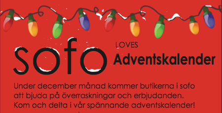 Södermalm i Stockholm har en egen julkalender där 24 butiker och restauranger bjuder på olika överraskningar varje dag enda fram till julafton. Besökare kommer att kunna lyssna på livemusik, tillverka egna smycken, höra sagor och skön körsång för att nämna några av aktiviteterna som kommer att pågå i SOFO under december månad.