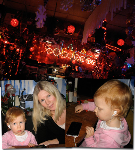 Ikväll var vi på vår kvarterskrog Peppar och åt middag. De är kända för sin speciella inredning och just nu har de (fortfarande) lysande julpynt precis överallt. Olivia har oftast svårt att sitta still och då kommer YouTube med korta klipp med Pippi, Emil, Karlsson på taket och Madiken till räddning.