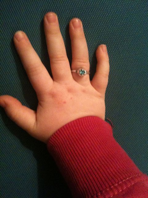 Madicken är en av favoriterna här hemma just nu och i filmen får hon en ring (efter att hon hoppat från taket med ett paraply :() Då kom jag att tänka på den här lilla ringen fick jag någon gång när jag var liten. Den passar perfekt på Olivia nu!
