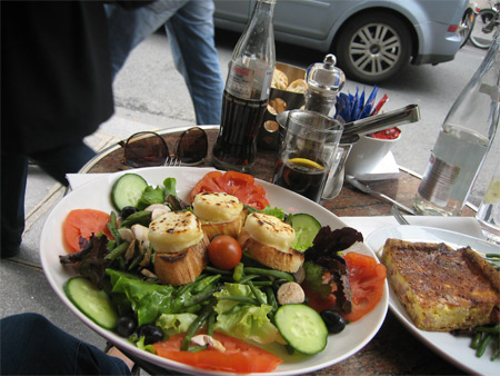 Idag tog vi en sväng till Gallerian Lafayette (där jag förresten såg Kenza och Tyra strosa runt) en sista gång och jag fick med mig en finfin väska som jag visar upp senare. Vi shoppade skor från Minelli, besökte Colette och Marc by Marc Jacobs-butiken innan vi slukade en god chèvresallad på en uteservering.