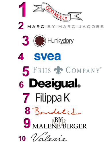 Det var längesen jag visade upp listan av de mest besökta varumärkena på MiaShopping. Listan ovan är från april och som vanligt är Odd Molly i topp. Nykomlingar på listan är Desigual, by Malene Birger och Valerie.