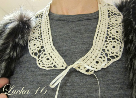 Ja nu under under alla årstider förutom sommaren bor jag praktiskt taget i sjalar och halsdukar, känns nästan lite bart utan och jag fryser så lätt. Men när man kommer in blir det ju varmt och man måste ta av sig halsduken för att inte svettas ihjäl 😉 En sådan krage hade varit så fint att ha under, som en dekoration som definitivt inte ska döljas av en nopprig halsduk 😛