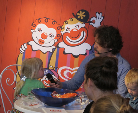 Erik Haag var moderator och pratar här med de lyckliga barnen som fick äta hur mycket glass de ville. Det slutade dock med lite illamående…