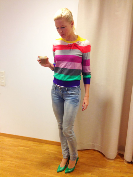 Dagens kläder Dagens kläder: 19 oktober 19 oktober, 2012 / TGIF! Här kommer en dagens med kaffe 🙂 Tröja från Sonia Rykiel Jeans från Levis Pumps från noë Dela gärna!Klicka för att dela på Twitter (Öppnas i ett nytt fönster)Klicka för att dela på Facebook (Öppnas i ett nytt fönster)Klicka för att dela till Pinterest (Öppnas i ett nytt fönster)