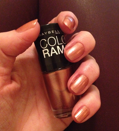 Jag byter nog nagellack två gånger i veckan så att få delar av  Maybellines nya Colorama känns som julafton. Höstkollektionen innehåller 20 nyanser och de kostar ca 39 kr styck. På mig har jag 465 – Brick Shimmer.