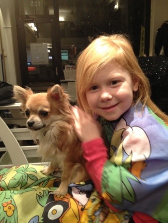 Tindra tar just nu hand om en liten chihuahua som satt så sött i Olivias knä när hon klipptes. Tror båda två var lika glada av varandras sällskap 🙂