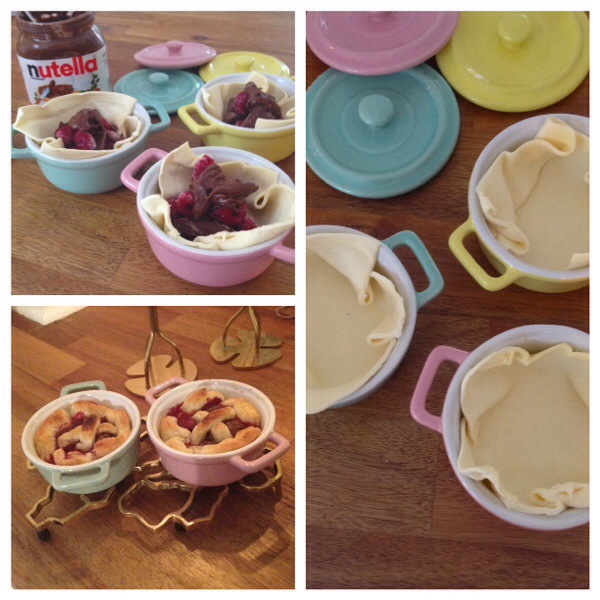 I helgen provade jag Bambis goda smördegspaj. Första gången gjorde jag precis efter Bambis recept med banan och nutella. Men eftersom varm banan inte går hem hos alla så gjorde jag ett eget expriment med hallon, blockchoklad och nutella – blev också en hit!