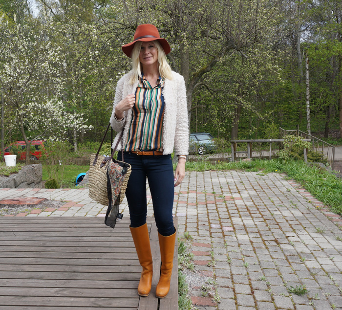 Det känns mer som höst än vår och det kan man se på mitt klädval idag. Väskan fick jag på Åhléns pressvisning idag. Den kommer bli perfekt att ta med till stranden i sommar.