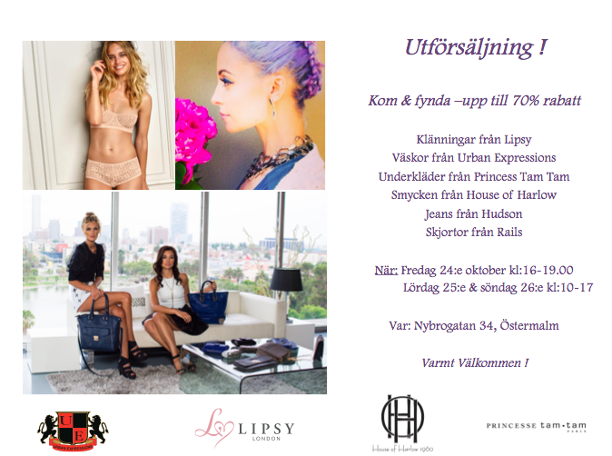 16:00 Utförsäljing Princess Tam Tam, Hudson, Lipsy mm