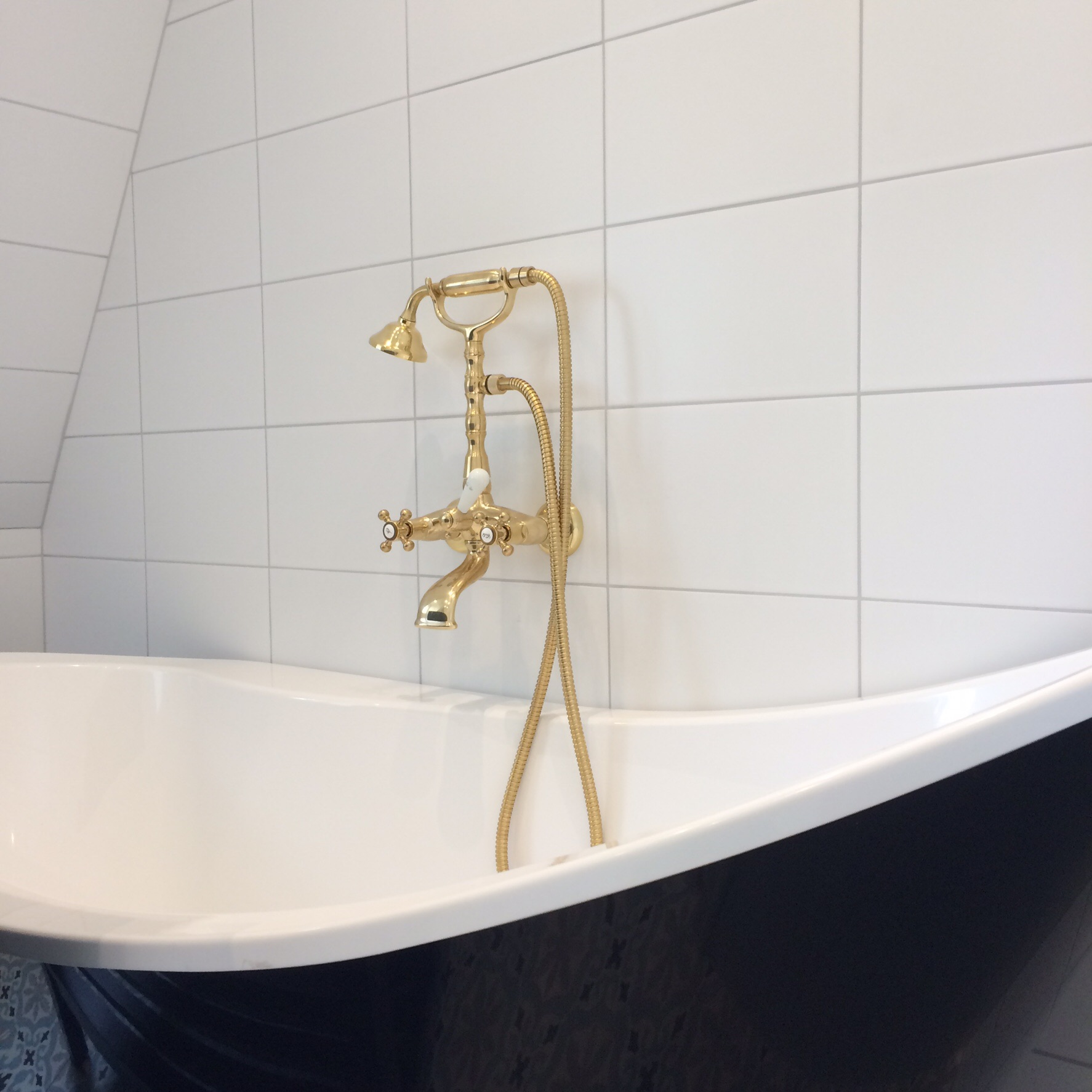 Idag har vi fått badkar från Svedbergs och den vackra badkarsblandaren från Tapwell på plats på övervåningen och handfatet från Swedmart på nedervåningen.