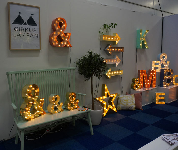Cirkus Lampan har fina bokstäver och symboler som lyser upp.