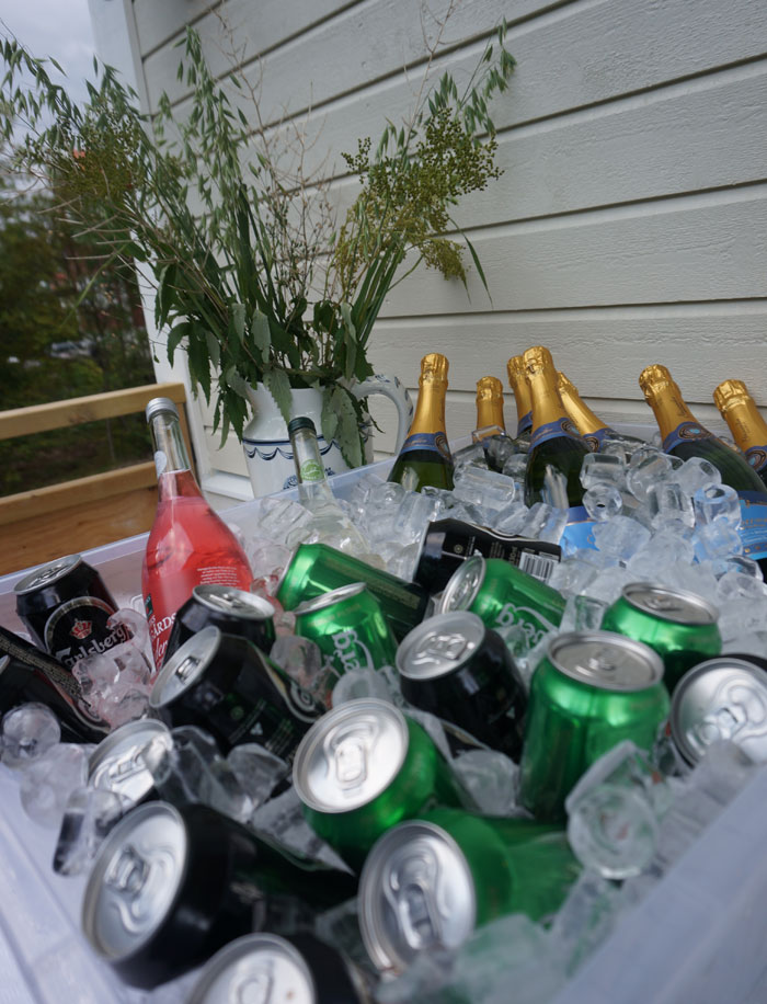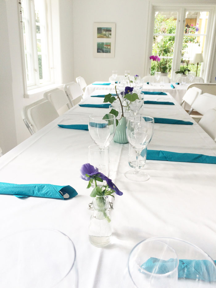 Bord, stolar, porslin och bestick hyrde vi från Bords.com vilket var otroligt smidigt. Det är skillnad att få äta på en riktig tallrik och slippa papp- och plast som blir ostadigt och går sönder. Sen slipper man diska också och behöver bara skölja innan man placerar allt i backarna igen.