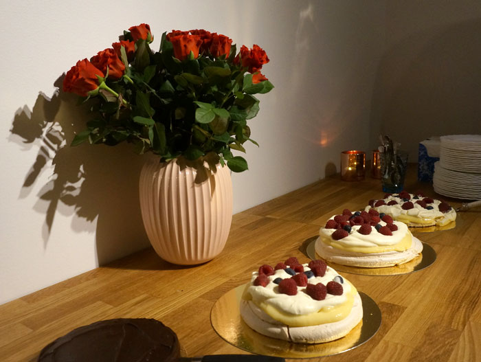 Igår hade vi kombinerad inflyttningsfest och födelsedagsfest för Thomas. Huset fylldes av härliga vänner och vi bjöd på buffé med bland annat varmrökt lax, ärtpesto, vattenmelon- och fetaostsallad och mumsig pavlova till efterrätt.