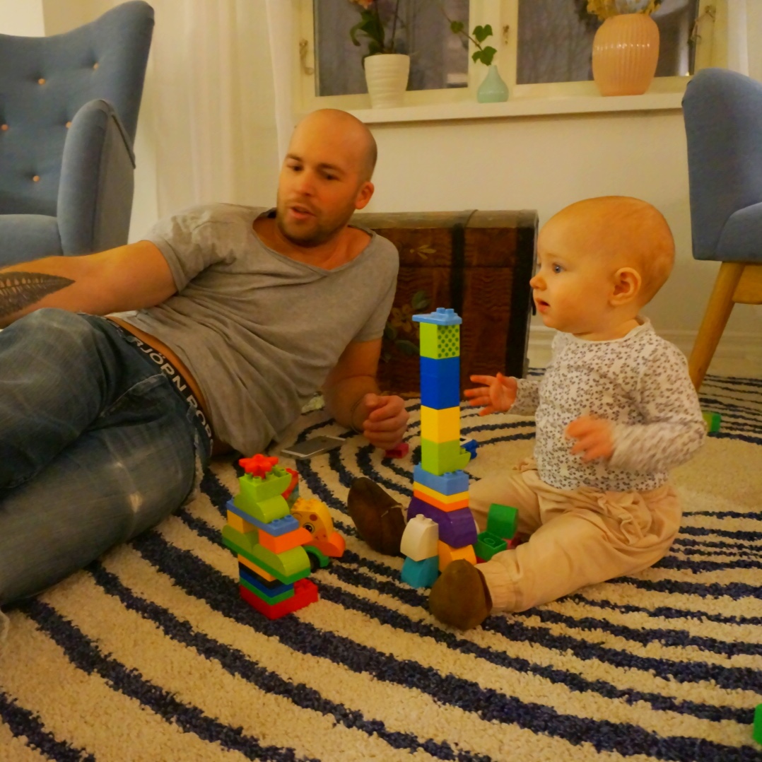 Ella sov passande nog när vi bakade men fick sen vara med och bygga lego med morbror. Hon kan förresten sitta nu och är så otroligt nöjd om hon får några leksaker att plocka med framför sig.